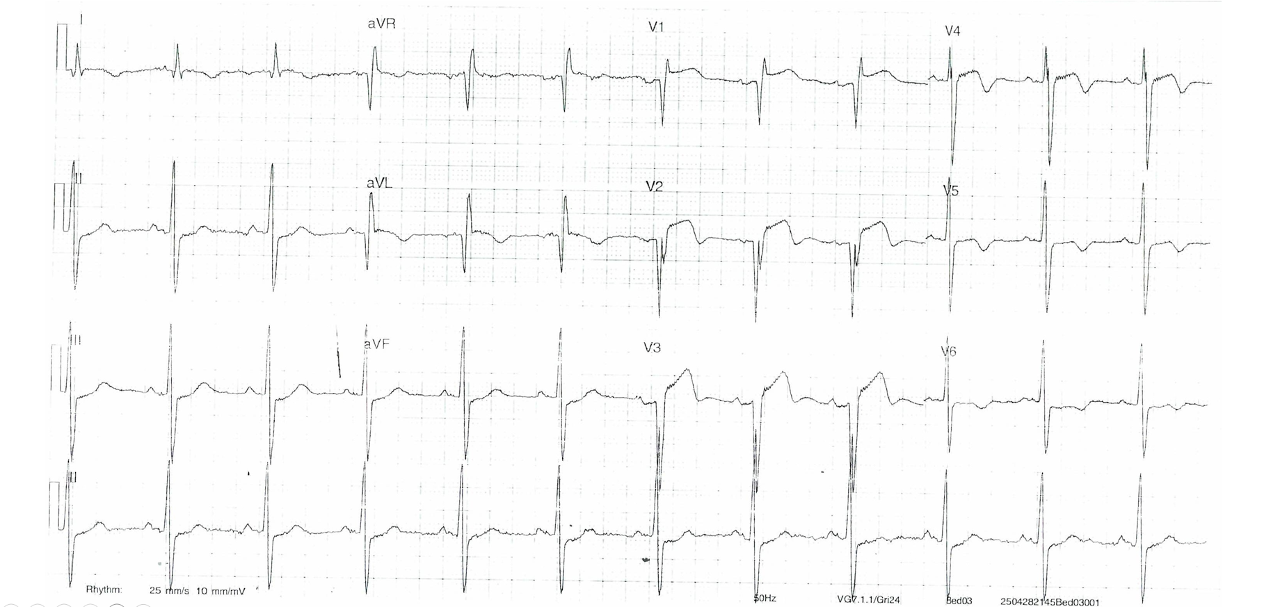 A 75-year-old male with crushing central chest pain for 2 hours. What does this ECG show?